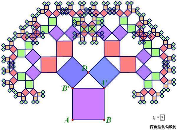 毕达哥拉斯树是根据毕达哥拉斯的勾股定理绘制的图形,它可以无限重复。因为经过多次重复后形状类似一棵树,所以被称为毕达哥拉斯树或者"勾股树"。