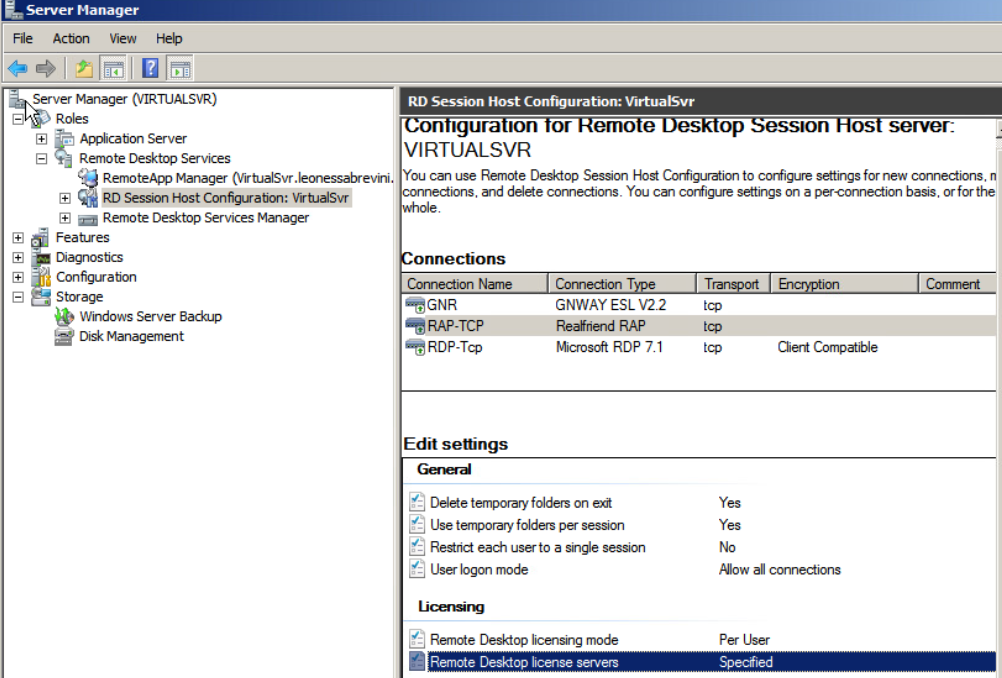 5. RealFriend: 安装瑞友天翼,提示“安装远程桌面服务”,打开服务管理器-远程桌面服务-RD会话主机配置