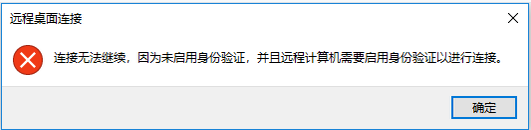 连接无法继续,因为未启用身份验证,并且远程计算机需要启用身份验证以进行连接
