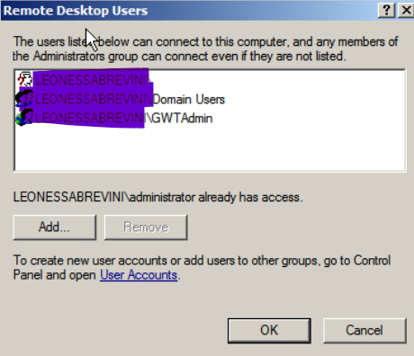 网友反映:是权限问题,用户权限不足,开启远程桌面的权限
