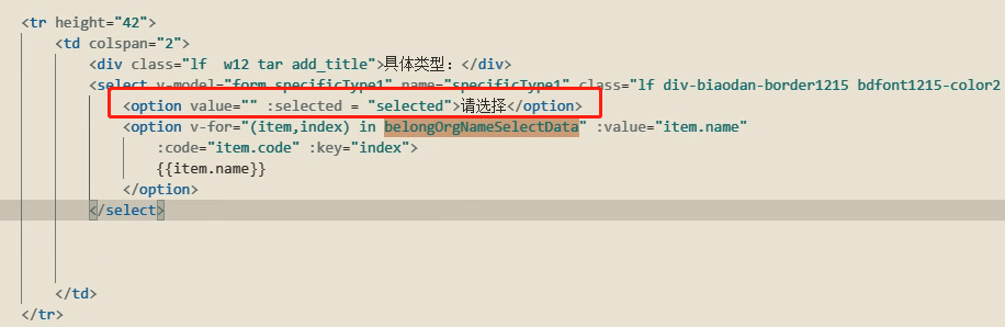 原因就是把v-model的字段写到了select标签上,后端字段为空;所以默认一直没有的;