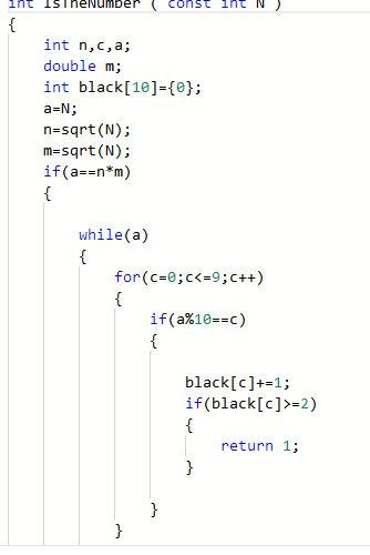 题目内容描述:本题要求实现一个函数,判断任一给定整数N是否满足条件:它是完全平方数,又至少有两位数字相同,如144、676等。