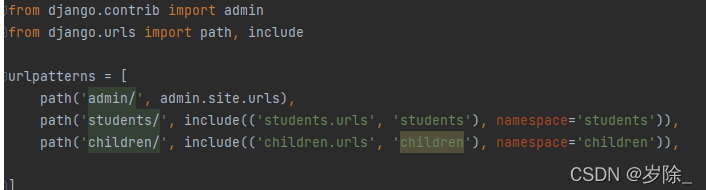 这样,假如students和children里都有name='xx'的url时,可以根据需要,进行'namespace:name'