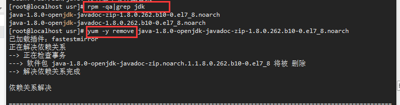 然后输入 yum -y remove(删除jdk)