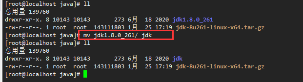 [root@localhost java]# mv jdk1.8.0_261/ jdk