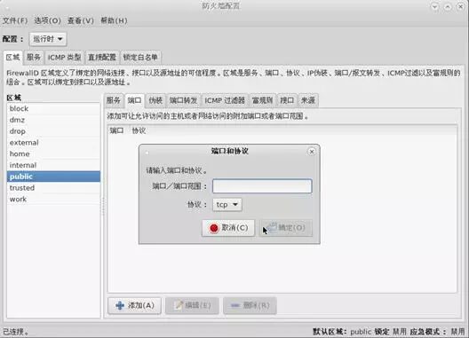 说明:firewalld 的缺省区域是 public。