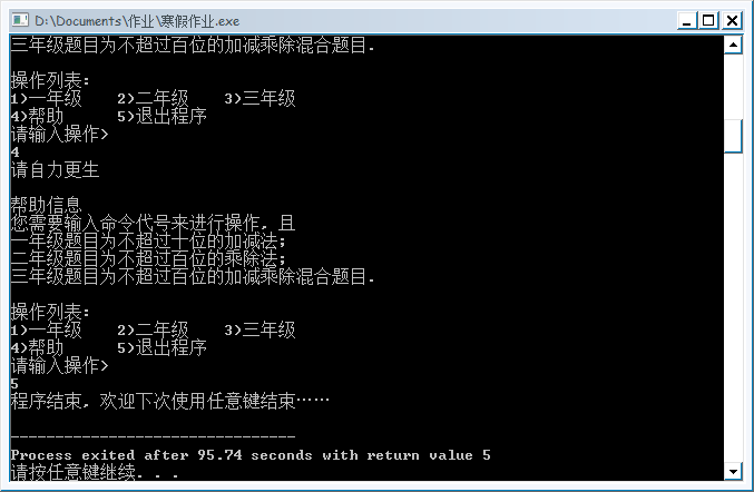 | 其他参考文献 | C语言编程:以实例教你如何在控制台程序中模拟一个选项菜单功能 |