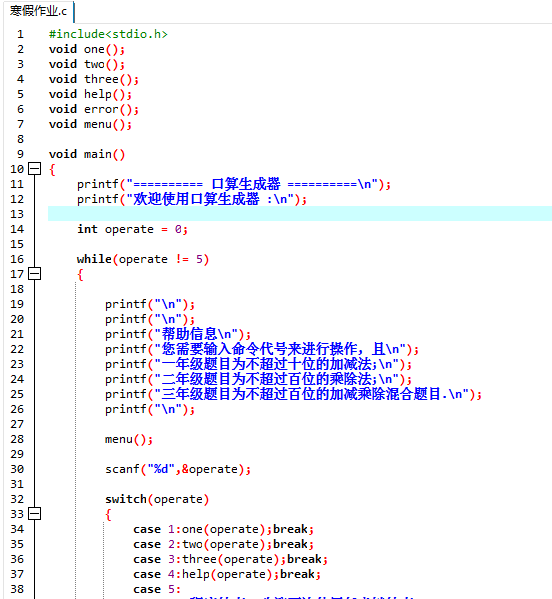 | 这个作业的目标 | 使用函数、Switch语句来完成菜单程序 |