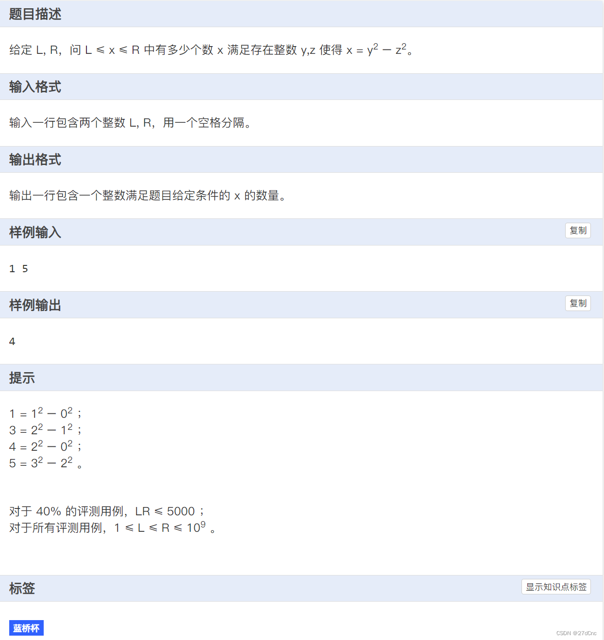 混子文章|蓝桥杯一题 -平方差