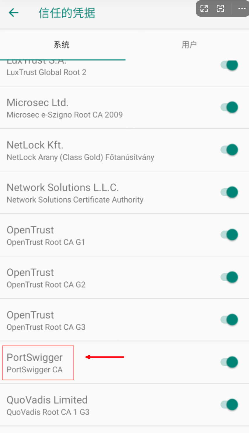 从Android 从 7.0 开始,安卓系统不再信任用户 CA 证书,所以你需要把 CA 证书安装到系统 CA 证书目录。