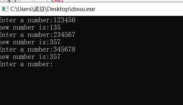#include<stdio.h> int main(){ int s,a,m,t; m=1; t=0; printf("Enter a number:") ; while(scanf("%d",&s)!=EOF){ while(s>=1) { a=s%10; s=s/10; if(a%2!=0){ t=t+a*m; m=m*10; } } if(s%2==1) t=t+s*m; printf("new number is:%d\n",t); printf("Enter a number:") ; t=0; m=1; } return 0; }