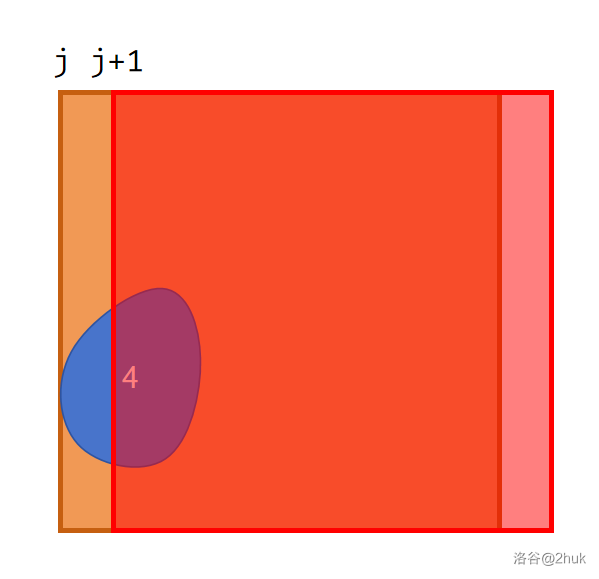 注意到当矩阵的左边界从 \(j\) 移动到 \(j + 1\) 时,至多有 \(\mathcal O(k)\) 个连通块的内流属性发生改变。例如上图 \(4\)。