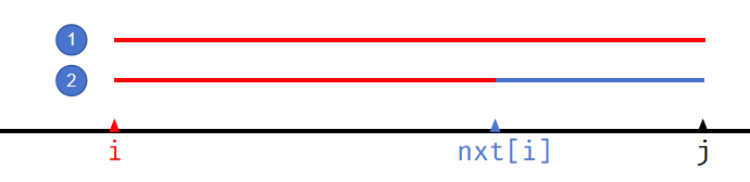 int dis = d[nxt[i] - 1] - d[i - 1];