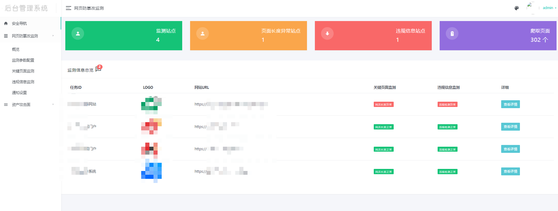 最近在尝试使用flask编写一个网站防篡改监测平台,目前已基本完成,前端使用光年模板修改,后端主要通过设置相关参数后轮询+正则匹配实现页面监控及篡改监测,简单介绍如下:
