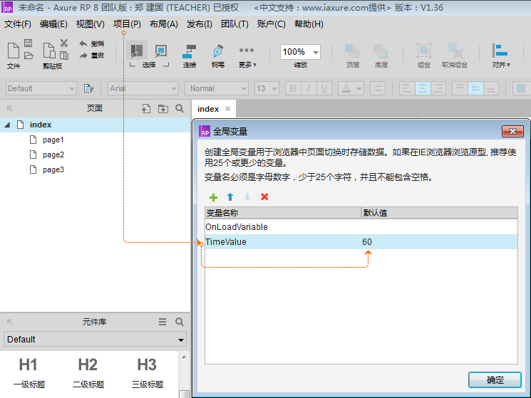 1、在【项目】菜单中,点击【全局变量】,添加一个新的全局变量“TimeValue”。