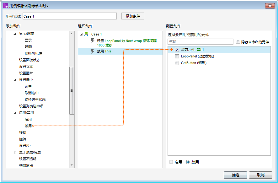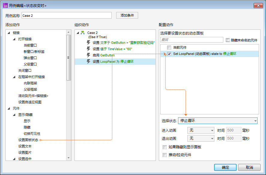 12、第4个动作为【设置面板状态】于动态面板“LoopPanel”,选择状态为【停止循环】。