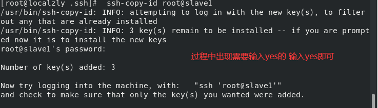 这个时候localzly的公钥文件内容会追加写入到slave1的 .ssh/authorized_keys