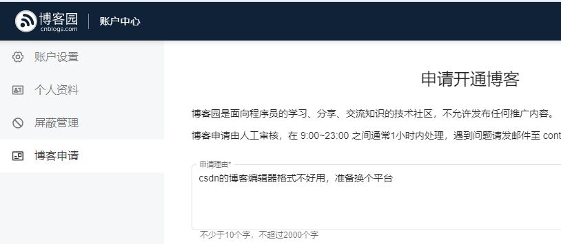 博客园申请理由写这1句话,居然12分钟就能开通成功!