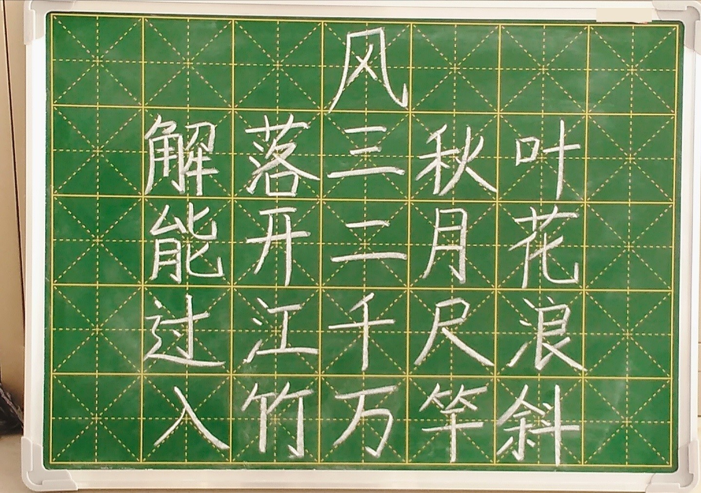 试讲时板书题目写在中间,教学内容从左侧黑板开始书写,写板正。条理一定要清晰,保证字迹清楚。粉笔字如果写得不好看,可以买一块小黑板练一练。这个是我之前的练字,说不上好看,但足够用了。