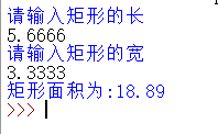 c = float(input("请输入矩形的长\n")) k = float(input("请输入矩形的宽\n")) s = k*c a = round(s,2) print("矩形面积为:" + str(a))