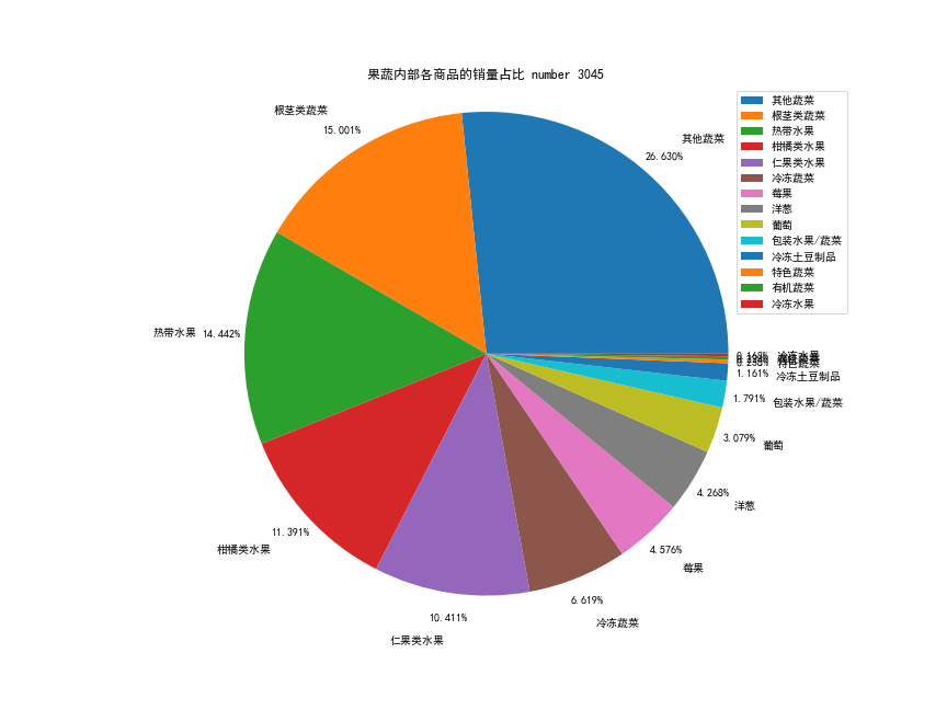 import numpy as np import pandas as pd inputfile = r'C:\Users\admin\Desktop\新建文件夹\GoodsOrder.csv' # 输入的数据文件 data = pd.read_csv(inputfile,encoding = 'gbk') # 读取数据 data .info() # 查看数据属性 data = data['id'] description = [data.count(),data.min(), data.max()] # 依次计算总数、最小值、最大值 description = pd.DataFrame(description, index = ['Count','Min', 'Max']).T # 将结果存入数据框 print('描述性统计结果:\n',np.round(description)) # 输出结果 inputfile1 = r'C:\Users\admin\Desktop\新建文件夹\GoodsOrder.csv' inputfile2 = r'C:\Users\admin\Desktop\新建文件夹\GoodsTypes.csv' data = pd.read_csv(inputfile1,encoding = 'gbk') types = pd.read_csv(inputfile2,encoding = 'gbk') # 读入数据 group = data.groupby(['Goods']).count().reset_index() sort = group.sort_values('id',ascending = False).reset_index() data_nums = data.shape[0] # 总量 del sort['index'] sort_links = pd.merge(sort,types) # 合并两个datafreame 根据type # 根据类别求和,每个商品类别的总量,并排序 sort_link = sort_links.groupby(['Types']).sum().reset_index() sort_link = sort_link.sort_values('id',ascending = False).reset_index() del sort_link['index'] # 删除“index”列 # 求百分比,然后更换列名,最后输出到文件 sort_link['count'] = sort_link.apply(lambda line: line['id']/data_nums,axis=1) sort_link.rename(columns = {'count':'percent'},inplace = True) print('各类别商品的销量及其占比:\n',sort_link) outfile1 = r'C:\Users\admin\Desktop\新建文件夹\percent1.csv' sort_link.to_csv(outfile1,index = False,header = True,encoding='gbk') # 保存结果 # 代码8-4 西点内部商品的销量及其占比 # 先筛选“西点”类型的商品,然后求百分比,然后输出结果到文件。 selected = sort_links.loc[sort_links['Types'] == '西点'] # 挑选商品类别为“西点”并排序 child_nums = selected['id'].sum() # 对所有的“西点”求和 selected['child_percent'] = selected.apply(lambda line: line['id']/child_nums,axis = 1) # 求百分比 selected.rename(columns = {'id':'count'},inplace = True) print('西点内部商品的销量及其占比:\n',selected) outfile2 = r'C:\Users\admin\Desktop\新建文件夹\child_percent1.csv' sort_link.to_csv(outfile2,index = False,header = True,encoding='gbk') # 输出结果 # 画饼图展示西点内部各商品的销量占比 import matplotlib.pyplot as plt data = selected['child_percent'] labels = selected['Goods'] plt.figure(figsize = (15,9)) # 设置画布大小 #explode = (0.02,0.03,0.04,0.05,0.06,0.07,0.08,0.08,0.3,0.1,0.3,0.02,0.03,0.04,0.05,0.06,0.07,0.08,0.08,0.3,0.1) # 设置每一块分割出的间隙大小 plt.pie(data,labels = labels,autopct = '%1.3f%%', pctdistance = 1.1,labeldistance = 1.2) plt.rcParams['font.sans-serif'] = 'SimHei' plt.title("西点内部各商品的销量占比 number 3045") # 设置标题 plt.axis('equal') plt.legend() plt.savefig(r'C:\Users\admin\Desktop\新建文件夹\xidian.png') # 保存图形 plt.show() # 展示图形 # 代码8-4 果蔬内部商品的销量及其占比 # 先筛选“果蔬”类型的商品,然后求百分比,然后输出结果到文件。 selected = sort_links.loc[sort_links['Types'] == '果蔬'] # 挑选商品类别为“果蔬”并排序 child_nums = selected['id'].sum() # 对所有的“果蔬”求和 selected['child_percent'] = selected.apply(lambda line: line['id']/child_nums,axis = 1) # 求百分比 selected.rename(columns = {'id':'count'},inplace = True) print('果蔬内部商品的销量及其占比:\n',selected) outfile2 = r'C:\Users\admin\Desktop\新建文件夹\child_percent1.csv' sort_link.to_csv(outfile2,index = False,header = True,encoding='gbk') # 输出结果 # 画饼图展示果蔬内部各商品的销量占比 import matplotlib.pyplot as plt data = selected['child_percent'] labels = selected['Goods'] plt.figure(figsize = (12,9)) # 设置画布大小 #explode = (0.02,0.03,0.04,0.05,0.06,0.07,0.08,0.08,0.3,0.1,0.3,0.02,0.03,0.04,0.05,0.06,0.07,0.08,0.08,0.3,0.1) # 设置每一块分割出的间隙大小 plt.pie(data,labels = labels,autopct = '%1.3f%%', pctdistance = 1.1,labeldistance = 1.2) plt.rcParams['font.sans-serif'] = 'SimHei' plt.title("果蔬内部各商品的销量占比 number 3045") # 设置标题 plt.axis('equal') plt.legend() plt.savefig(r'C:\Users\admin\Desktop\新建文件夹\guoshu.png') # 保存图形 plt.show() # 展示图形