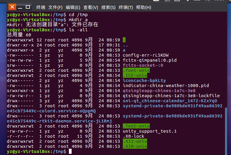 (5)进入/tmp目录,创建一个名为a的目录,并查看有多少目录存在