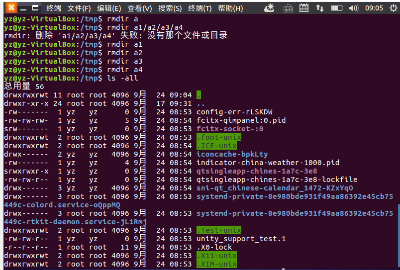 (7)将上例创建的目录a(/tmp下面)删除