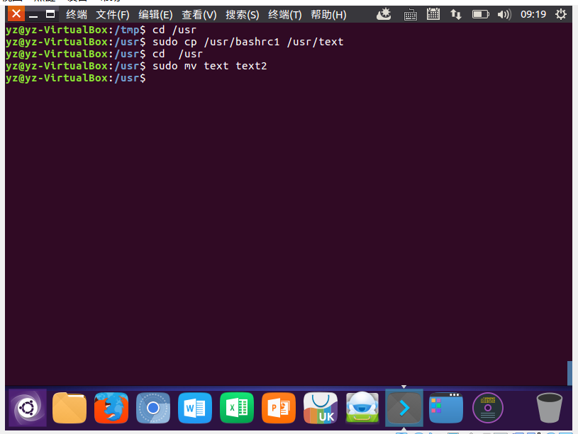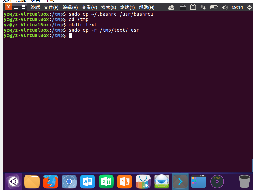 (10)在/tmp下新建目录test,再复制这个目录内容到/usr