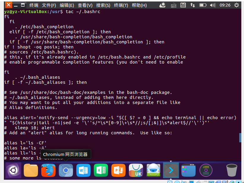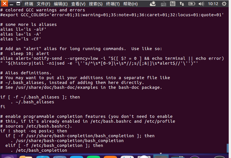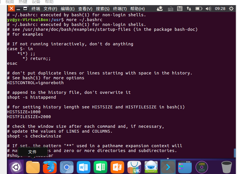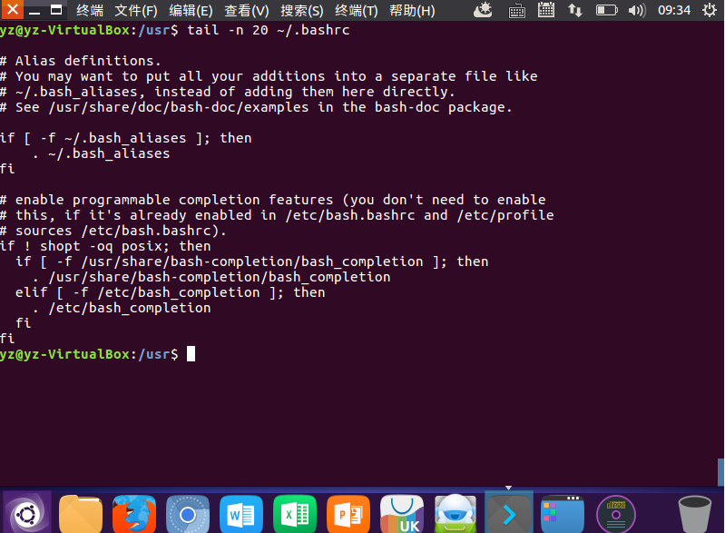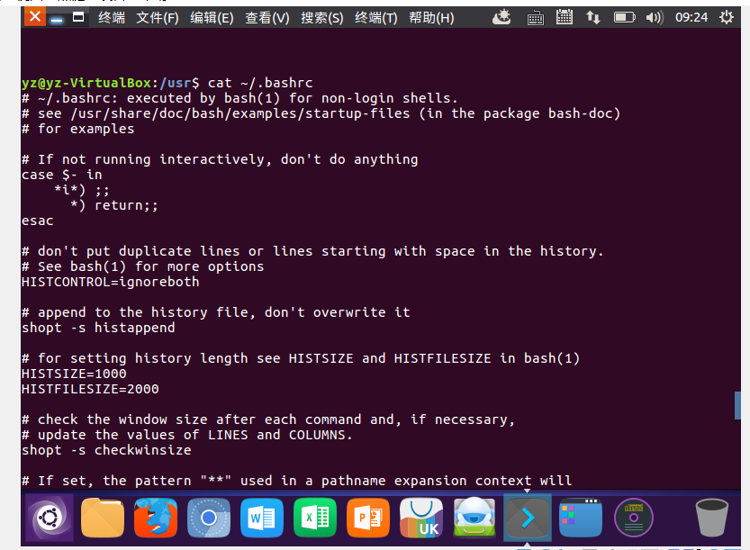 (15)查看主文件夹下的.bashrc文件内容