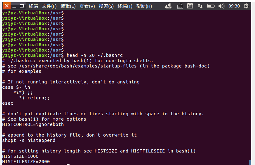 (9)将主文件夹下的.bashrc复制到/usr下,命名为bashrc1