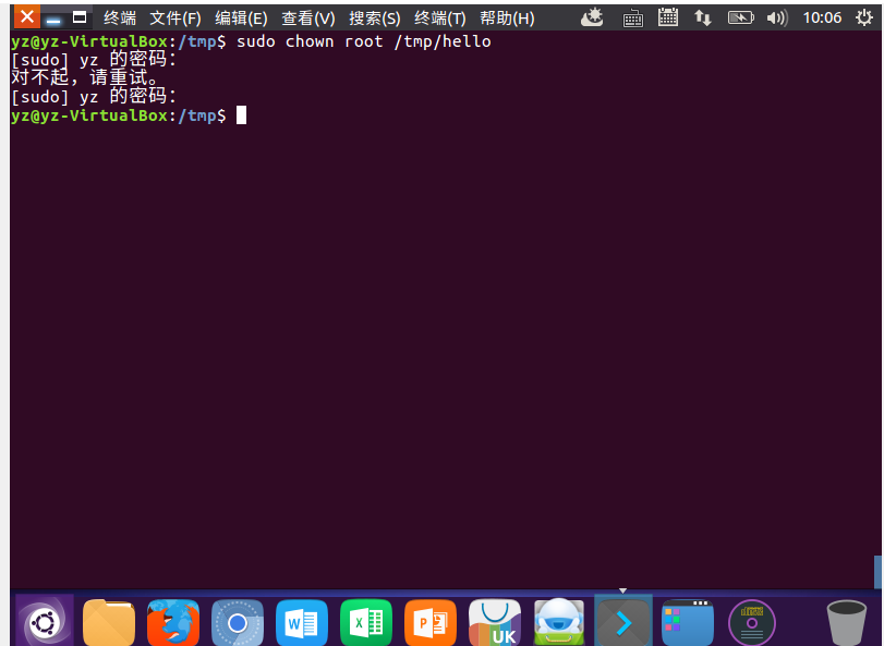 (22)将hello文件所有者改为root帐号,并查看属性