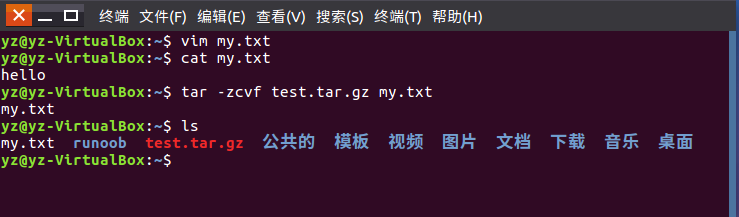 (24)将my.txt打包成test.tar.gz