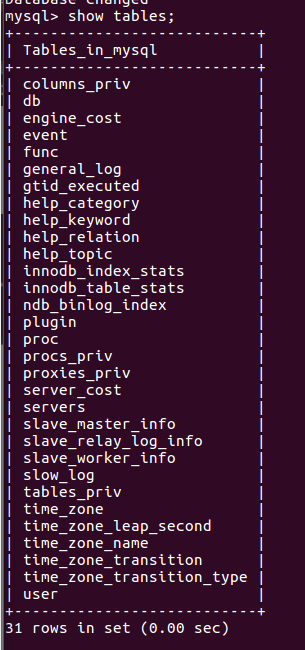 (28)展示库里表格:show tables;