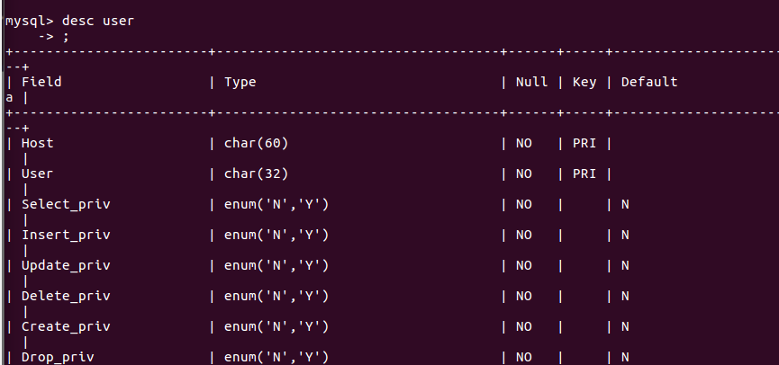 (29)显示某一个表格属性:desc 表格名;