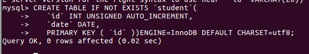 (32)在sc中创建一个表格:create table if not exists student( );