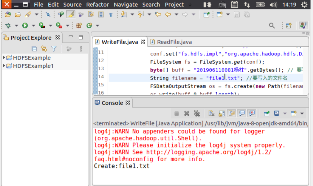 二、利用hadoop 的java api,向HDFS写一个文件。