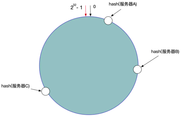 取模后的值域可组成一个圆形的数据区间,每次查找数据时 在 圆数据区间中顺时针查找所在服务器