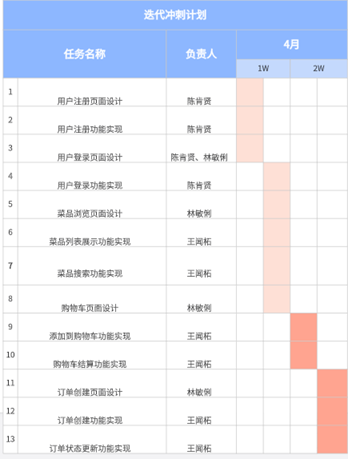 | 实现菜品列表展示 | 4小时 | 王闻柘、林敏俐 | |