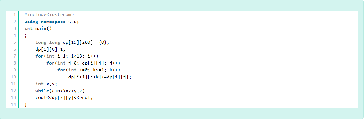 从这个代码我们可以知道它是计算n的置换数,其中出现了while语句,以及for的循环结构,for的结构是(赋值;循环条件;循环后执行的语句)这样子的表达形式。