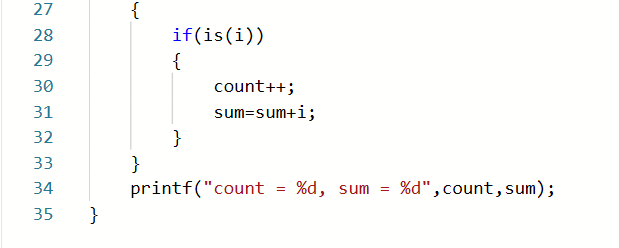 函数count_sum利用函数is统计给定区间[a, b]内有多少个满足上述要求(即令is返回1)的整数,并计算这些整数的和。最后按照格式
