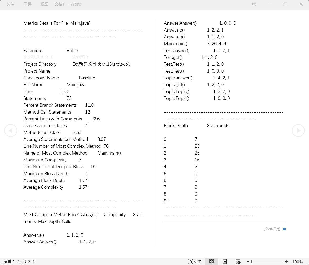 第一次的答题判题程序类图以及SourceMontor的生成报表内容: