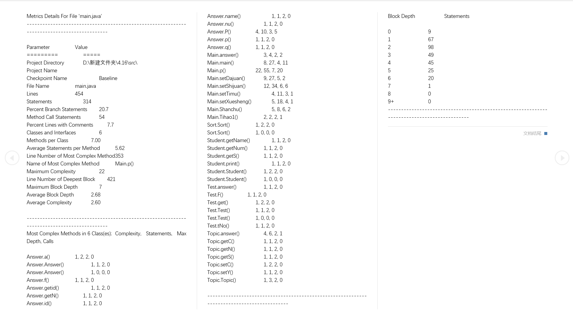 这次的代码总共写了454行,运用了六个类,在上一次的基础上增加了学生类,主要增加了删除功能,修改了答卷类、主类和各种信息的解析等。