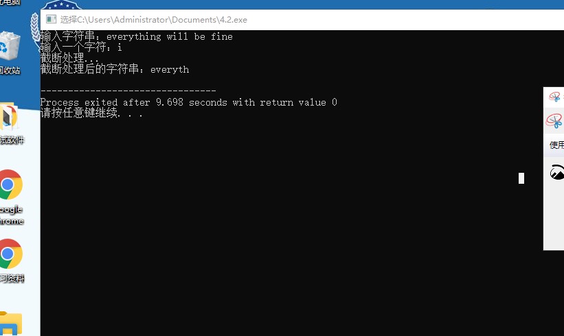 #include <stdio.h> #define N 80 void str_trunc(char *str,char x); int main(){ char str[N]; char ch; printf("输入字符串:"); gets(str); printf("输入一个字符:"); ch=getchar(); printf("截断处理...\n"); str_trunc(str,ch); printf("截断处理后的字符串:%s\n",str); } void str_trunc(char *str,char x){ while(*str){ if(*str==x){ *str='\0'; break; } *str++; } }
