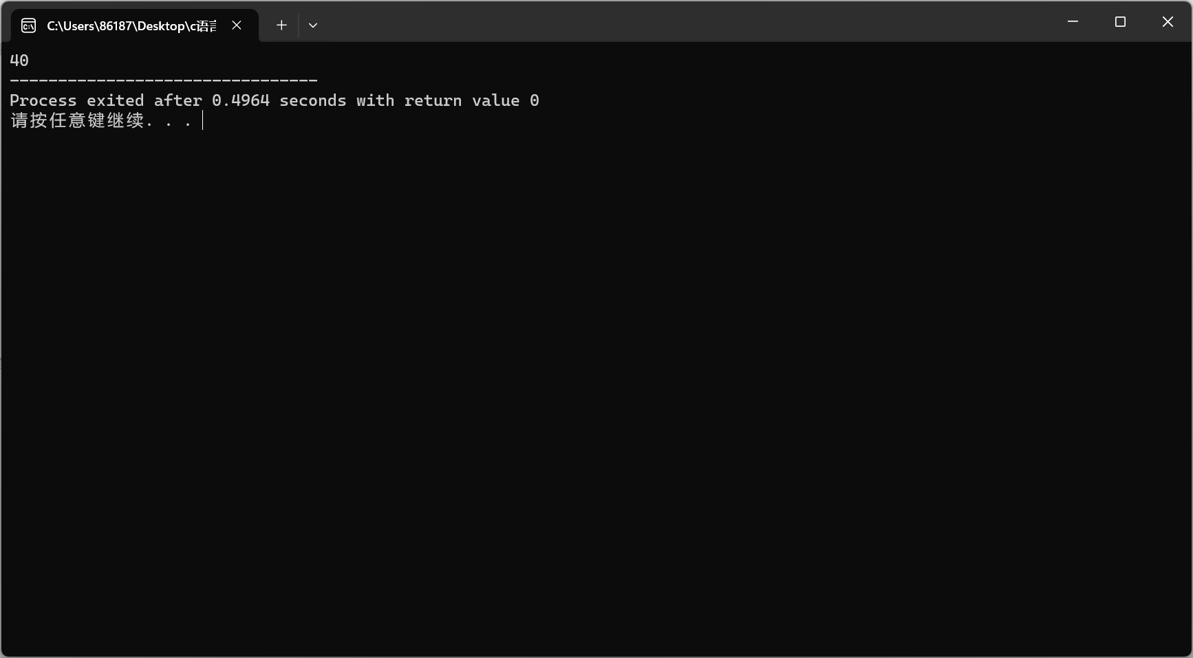 #include <stdio.h> int main(){ FILE *fp; int i=0; fp=fopen("E:\\计算机\\My.txt","r"); if(fp==NULL){ printf("fail to open file\n"); return 1; } while(fgetc(fp)!=EOF){ i++; } printf("%d",i); fclose(fp); return 0; }