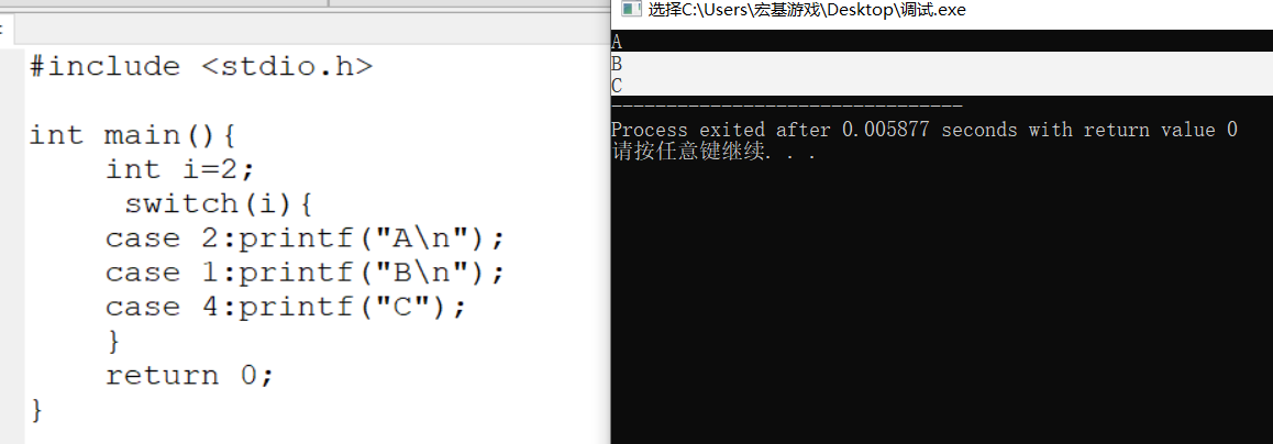 1、我们在switch中每次会根据提前设定的量判断第几行执行语句,但是如果没有break,我们的程序将会到下一行执行语句,尽管设定的量不符合case。如下演示