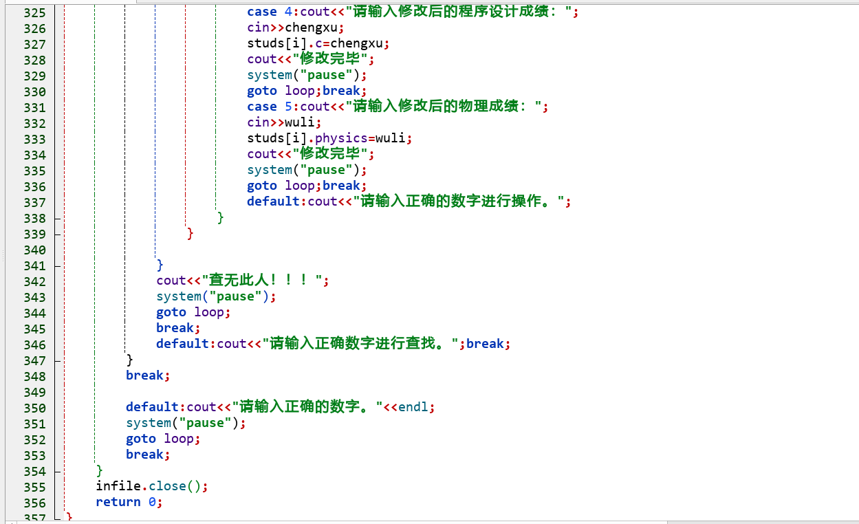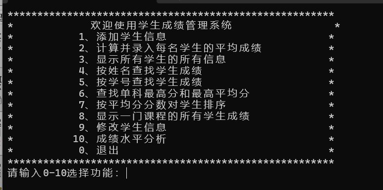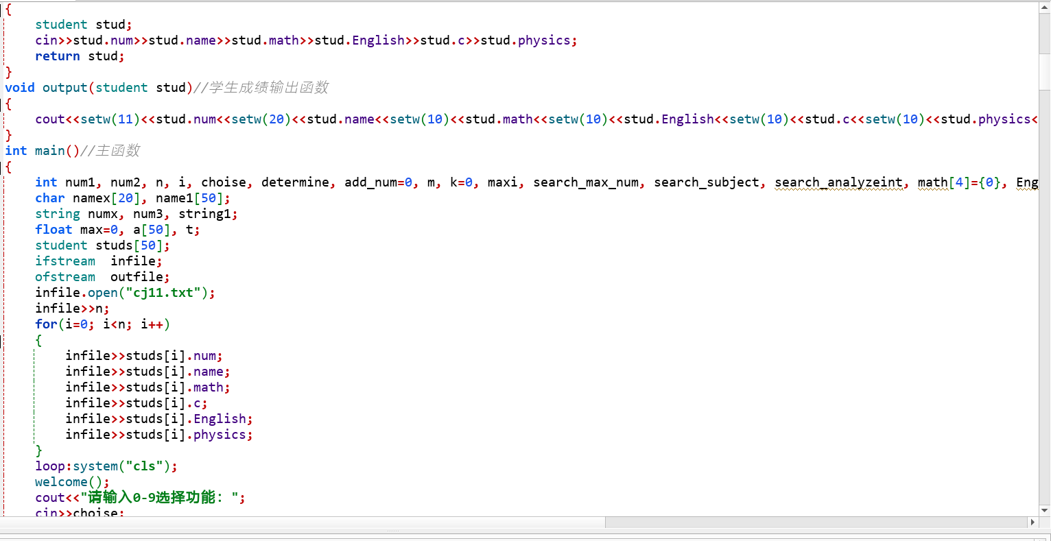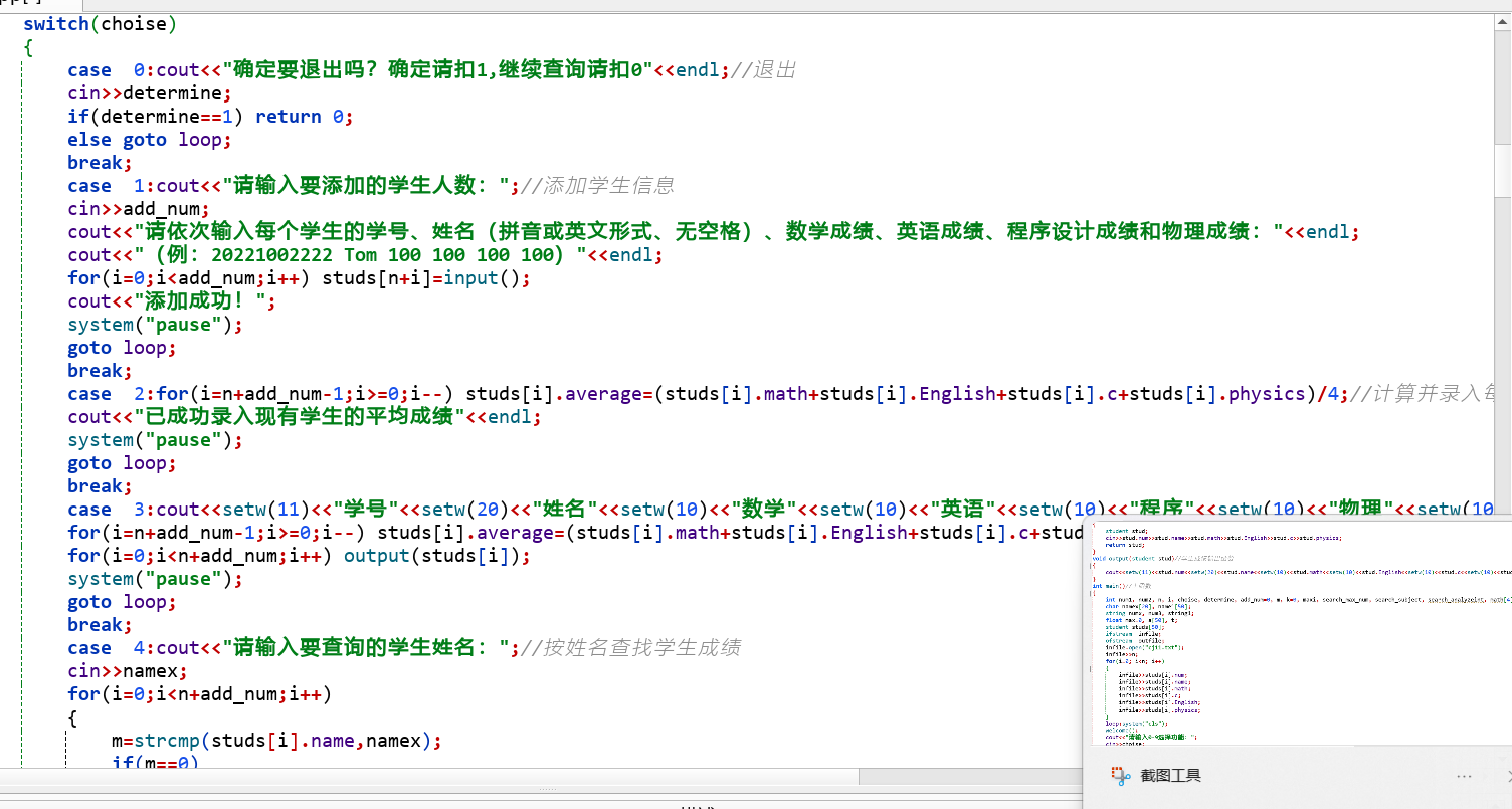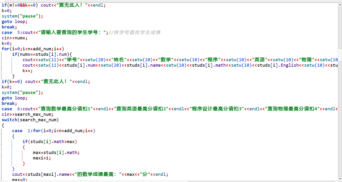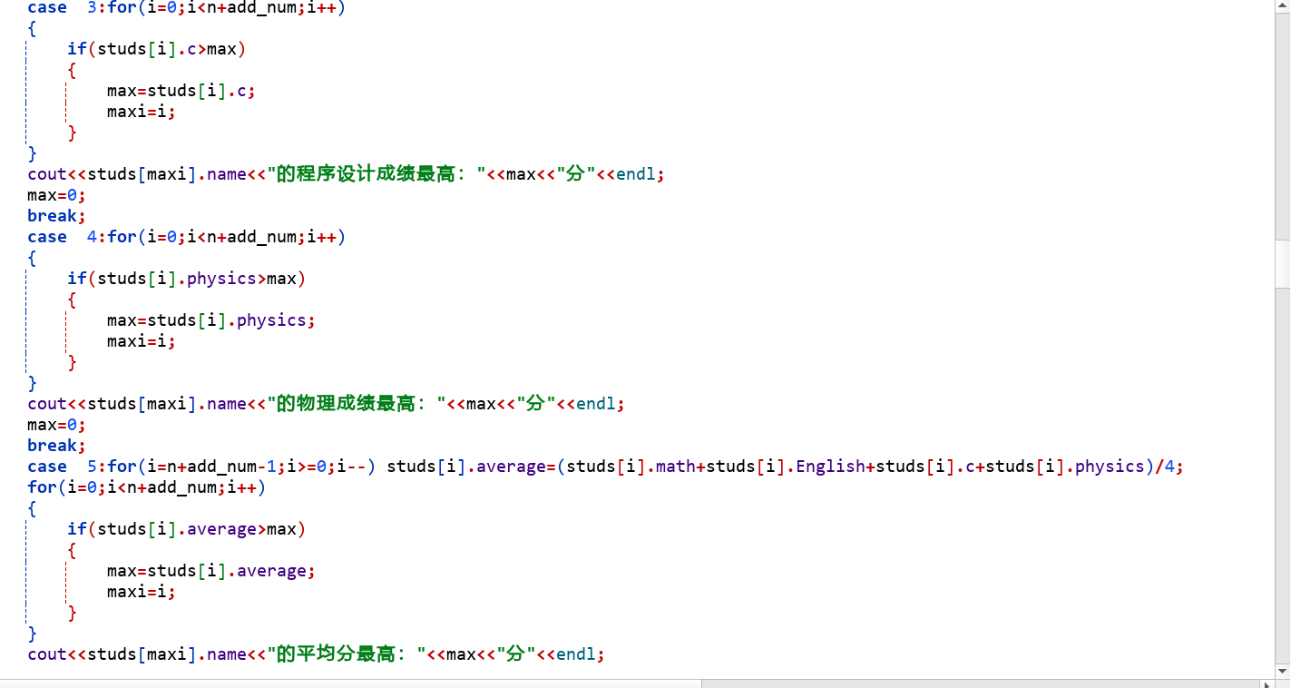 (4)case 10:for(i=n+add_num-1;i>=0;i--) studs[i].average=(studs[i].math+studs[i].English+studs[i].c+studs[i].physics)/4;