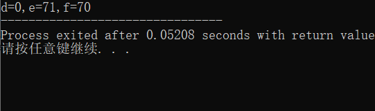 printf("d=%d,e=%d,f=%d",d,e,f);