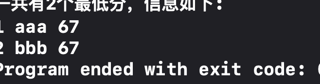 printf("\n一共有%d个最低分,信息如下:\n", count);