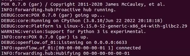 ./pox.py log.level --DEBUG forwarding.hub