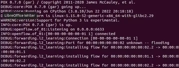 1)停止hub模块,运行forwarding文件夹下的 l2_learning 模块